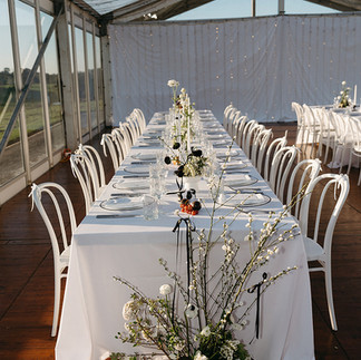 Adrian and Alexis embraced a bold yet minimalistic design aesthetic. The styling featured a striking contrast of whites against deep blacks, creating a clean and modern look. From the table settings to the décor, every element was meticulously curated to blend sophistication with individuality.